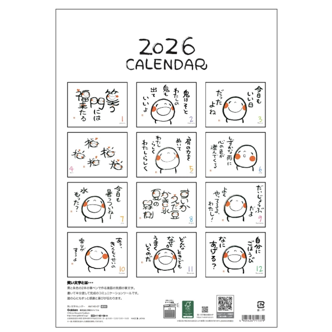 満面の笑顔が心穏やかになる笑い文字のカレンダーでございます。